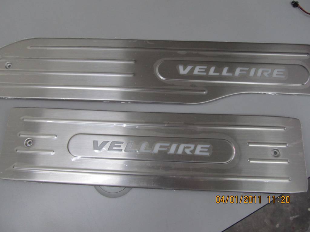 Package included 4 pieces of Toyota Vellfire Door Sill Scuff Plate with Blue LED light.