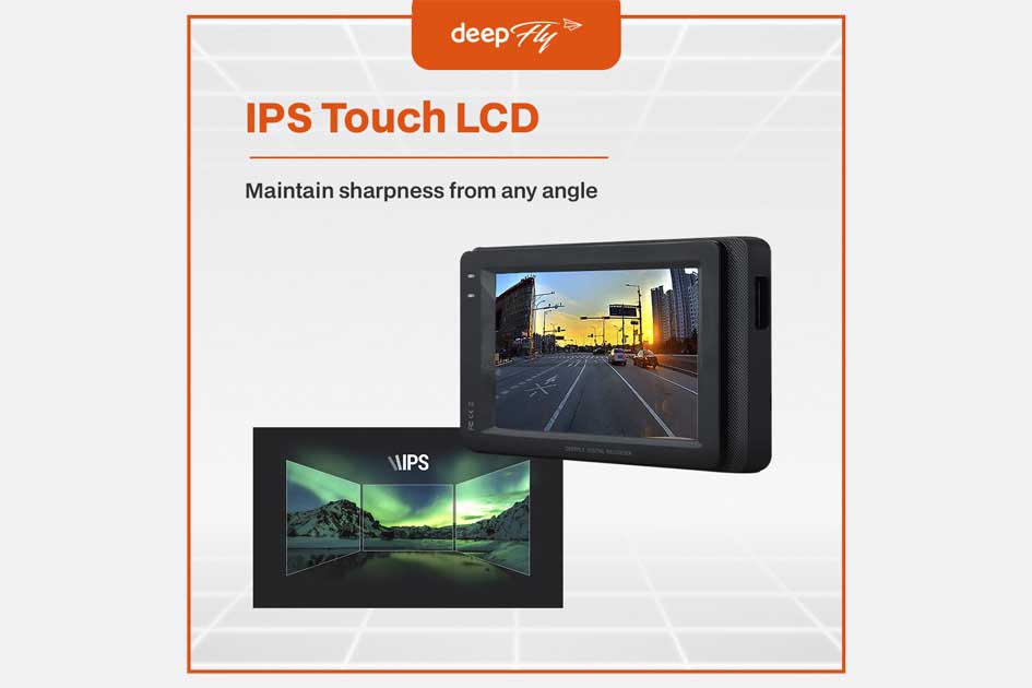 Top of the top-of-the-line wide viewing angle LCD panel embedded in DEEPFLY DF10 shows fewer afterimages in all directions in keeping clearness. - Deepfly Dash Cam Mobile APP