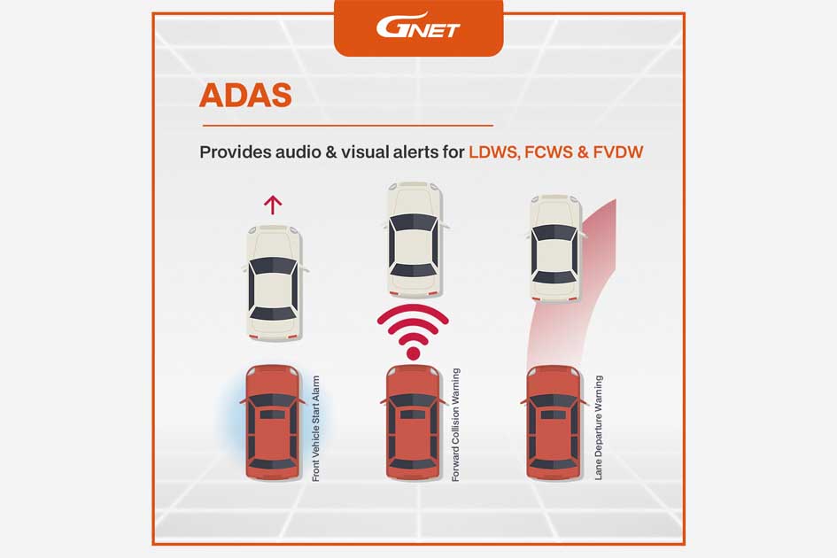 3 Functions For Safe Driving ADAS is a safe driving assistance system for the driver's safe driving environment 1. FVSA - Forward Collision Warning System The vehicle in front of you is pulling away more than 2 meters, the dash cam lets the driver know with a beep sound also the departure icon on the LCD screen. *Non-LCD product provides a sound warning only 2. FCWS - Forward Collision Warning System If the distance of the vehicle in front of you is reducing rapidly in a short time with high speed, the dash cam lets the driver know with a beep sound and displays a collision warning icon on the LCD screen. *Non-LCD product provides a sound warning only 3. LDWS - Lane Departure Warning System If you leave the lane while driving, the dash cam lets the driver know with a beep sound, and it shows yellow or red lines for notification on the LCD screen. *Non-LCD product provides a sound warning only * Warning icons for lane detection, forward departure and collision are only visible if the LCD is on. ADAS settings are available when the GPS is connected.