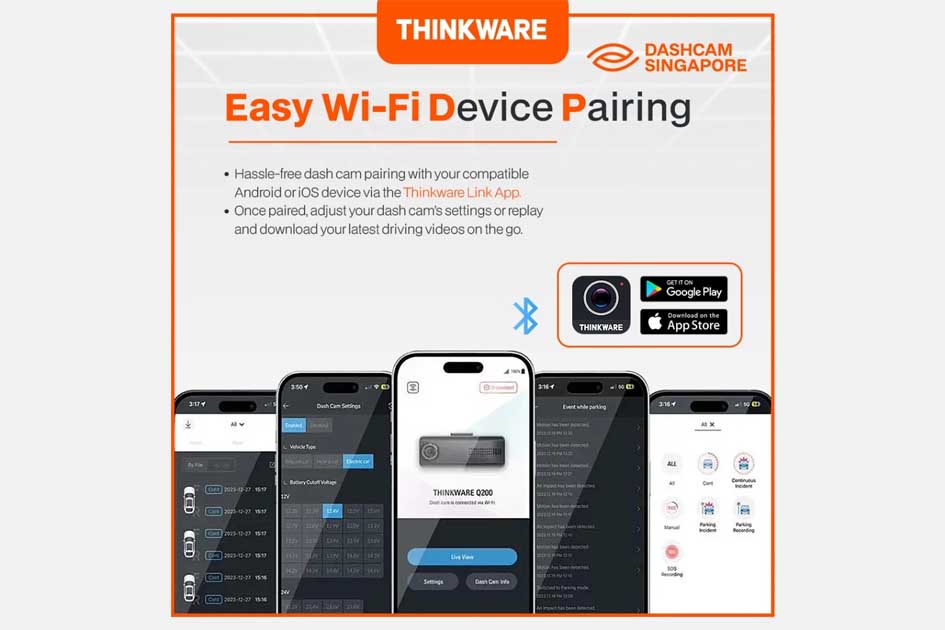 Effortlessly pair your dash cam with any compatible Android or iOS device using the THINKWARE DASH CAM LINK app. Once connected, you can easily adjust settings, replay footage, and download your latest driving videos on the go.
