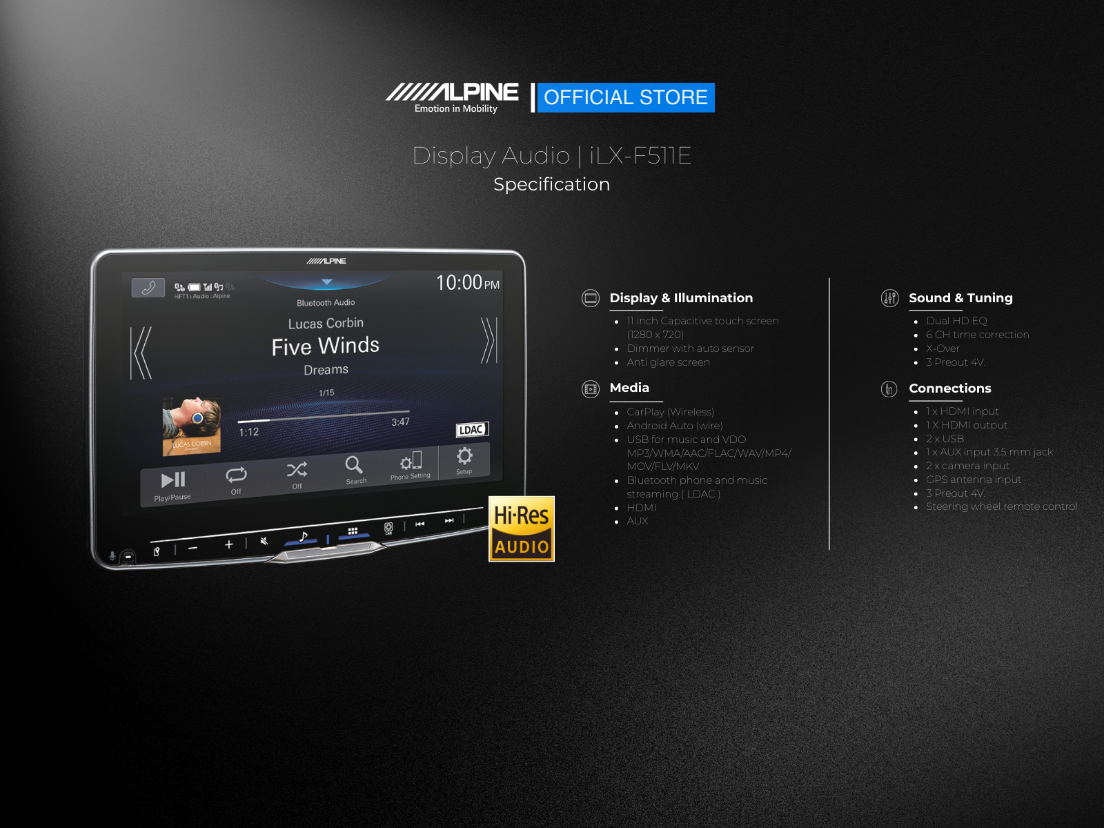 - Expert Sound tuning - Premium Sound with Alpine tuning technology, Preset EQ, CrossOver, 6CH time correction, 13 Band PEQ, separate CH