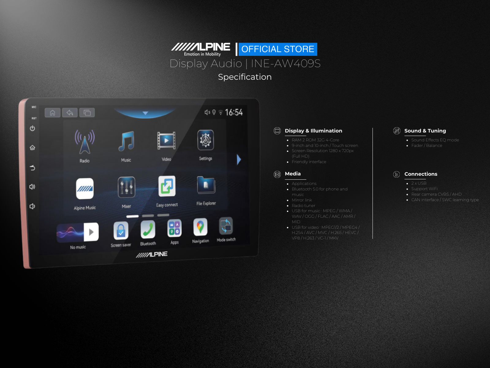 The new ingenious Alpine iNE-AW409S, 9-inch touchscreen display with provide a friendly GUI and work with Alpine OS. The Alpine iNE-AW409S can support more applications, more fun, Makes your journey brighter and enlightened. Boost up your sound with Alpine sound quality.