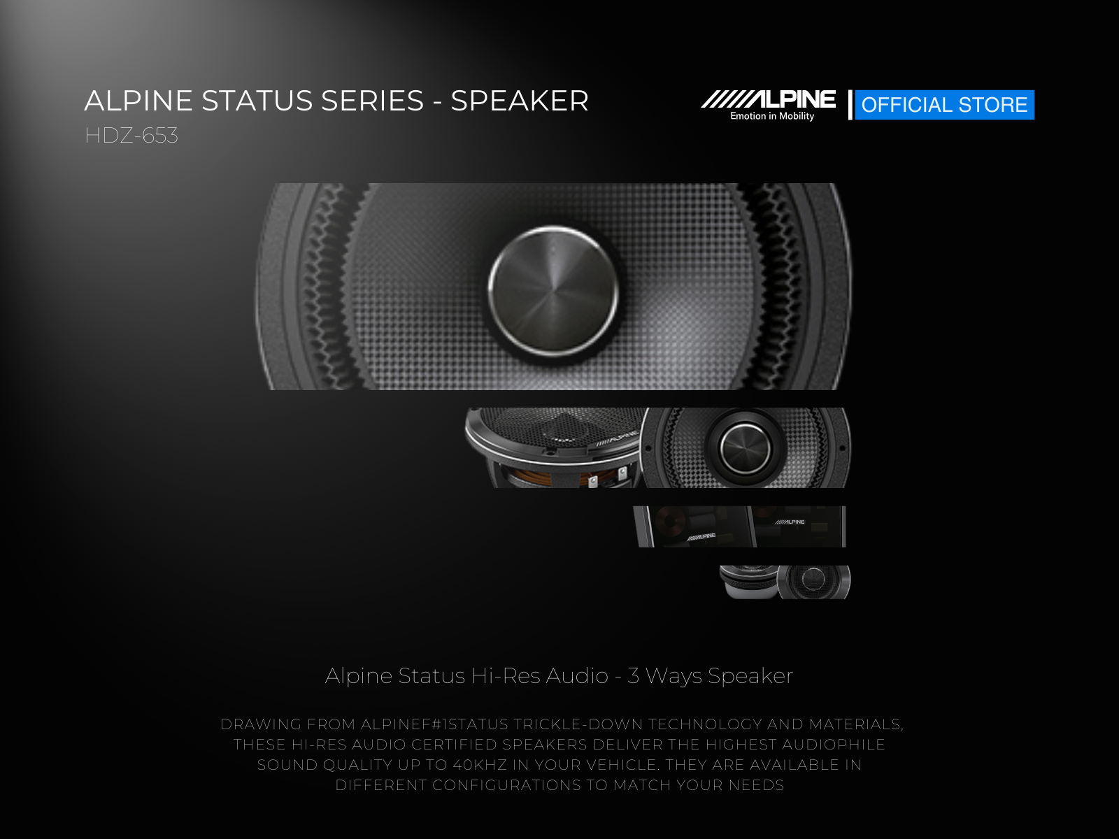 Drawing from AlpineF#1Status trickle-down technology and materials, these Hi-Res Audio certified speakers deliver the highest audiophile sound quality up to 40kHz in your vehicle. They are available in different configurations to match your needs.