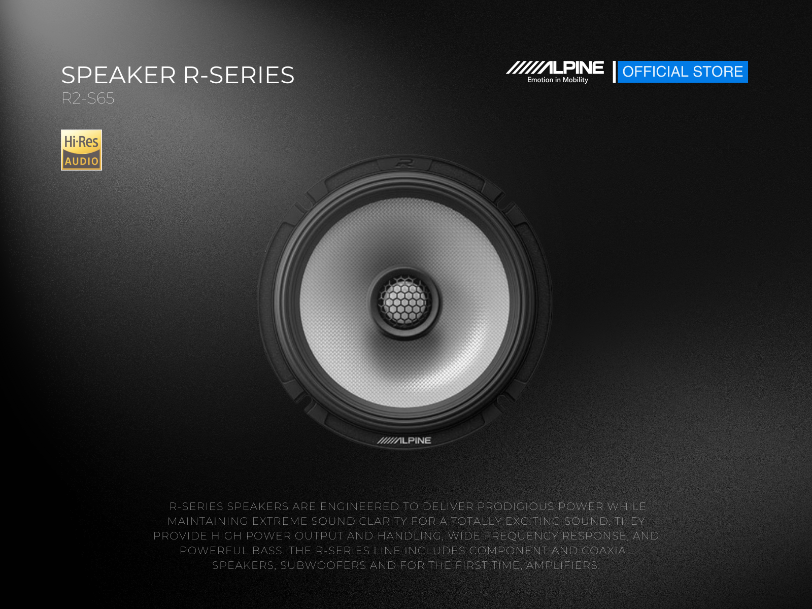maintaining extreme sound clarity for totally exciting sound. They provide high power output and handling, a wide frequency response and a powerful bass. The R-Series line includes component and coaxial speakers, subwoofers and for the first time, amplifiers.