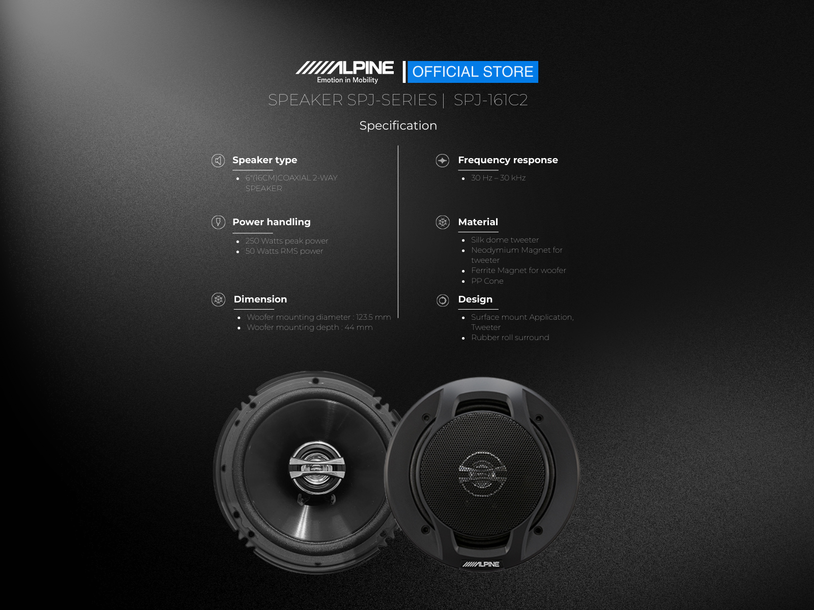 The entry-level Type-J speaker series is an affordable way to upgrade your factory speakers or even to start building a sound system, for the excellent sound quality and performance you expect from Alpine.