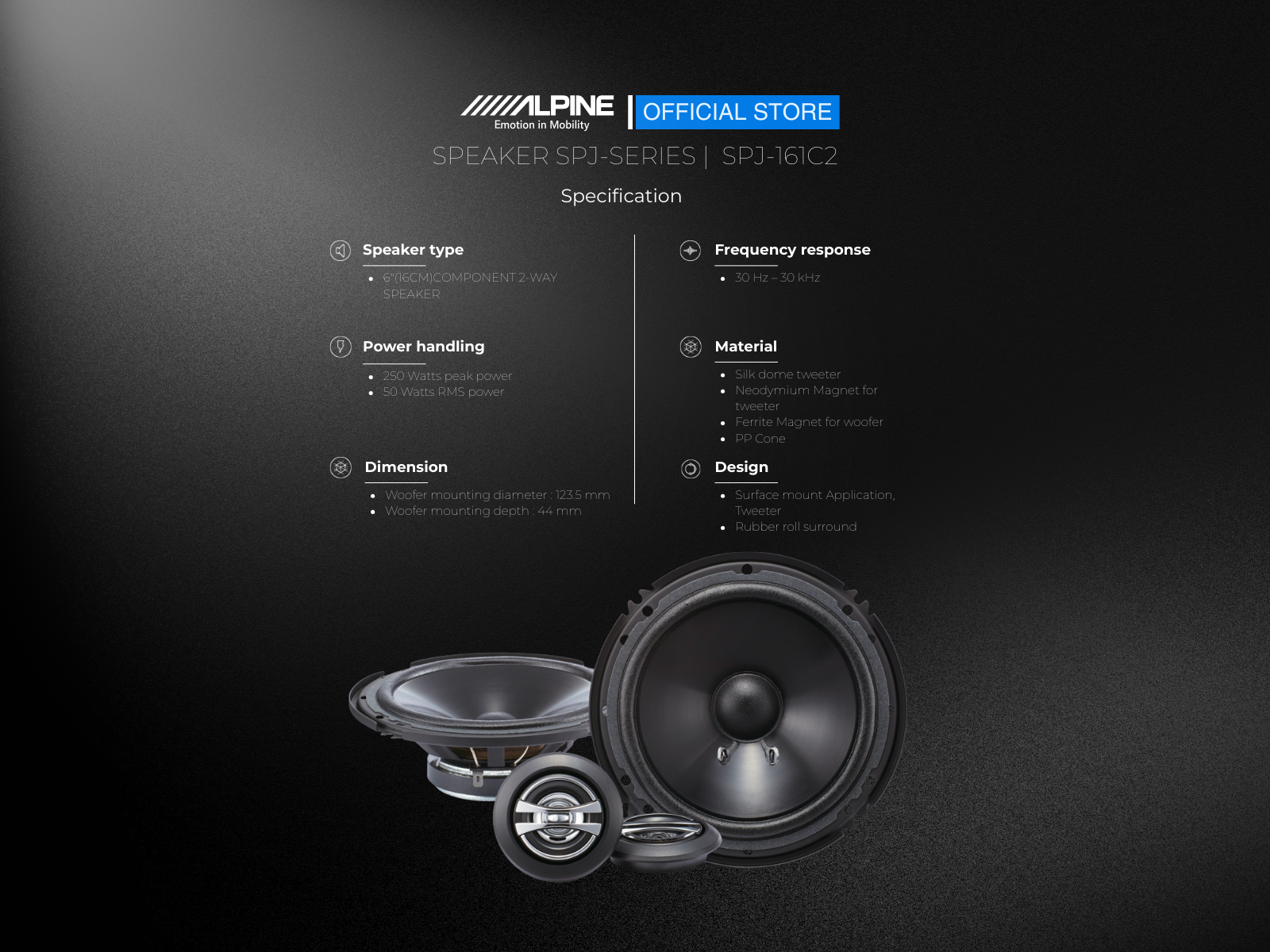 The entry-level Type-J speaker series is an affordable way to upgrade your factory speakers or even to start building a sound system, for the excellent sound quality and performance you expect from Alpine.
