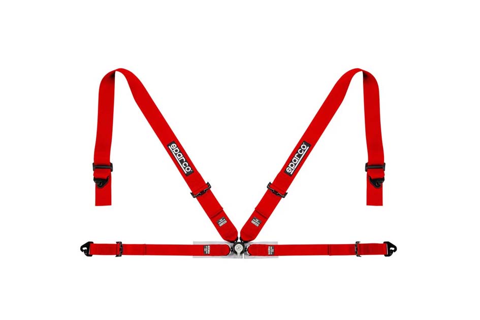 This SPARCO 4-point harness features an aircraft-style quick-release buckle, 3” shoulder straps with steel adjusters, and 2” lap straps with steel adjusters for pull adjustment.