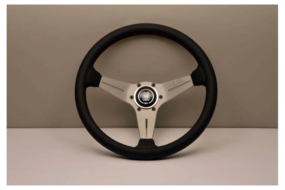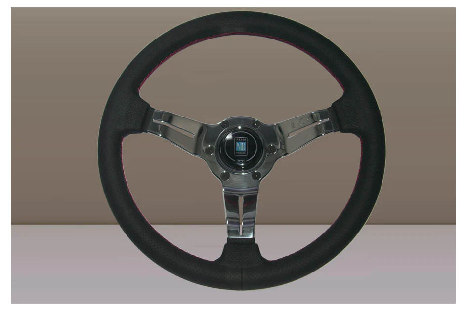 350mm/Black Perforated Leather with Glossy Spokes/R