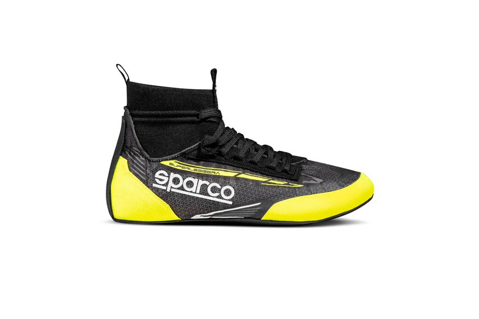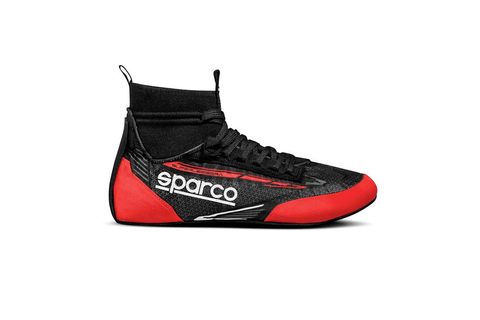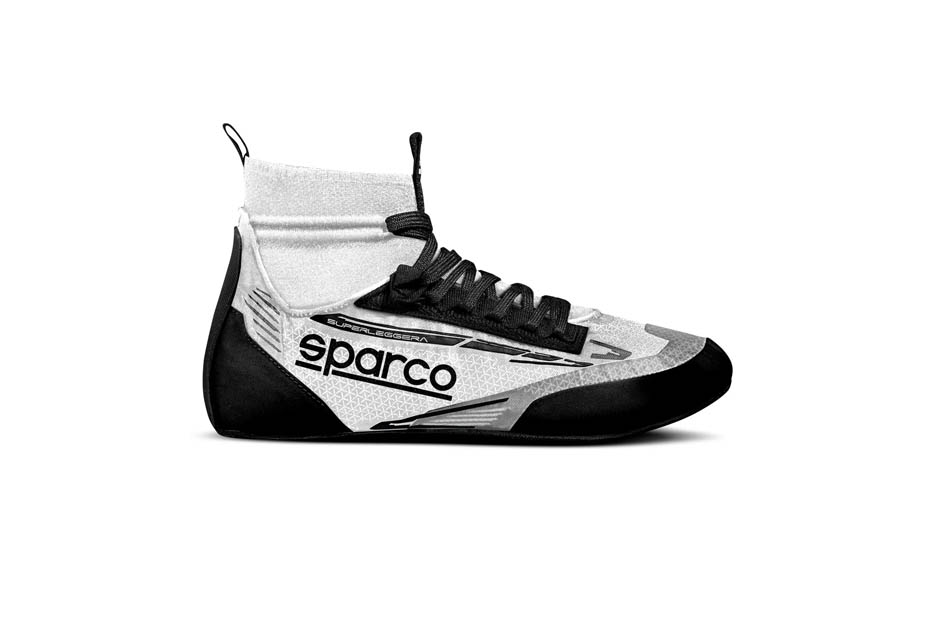The Superleggera is an ultra-lightweight race boot from Sparco, which is constructed using a printed flame-retardant fabric upper with transparent silicone reinforcement areas. An internal elasticated sock replaces the traditional tongue system and provides much improved comfort with a closer fit.