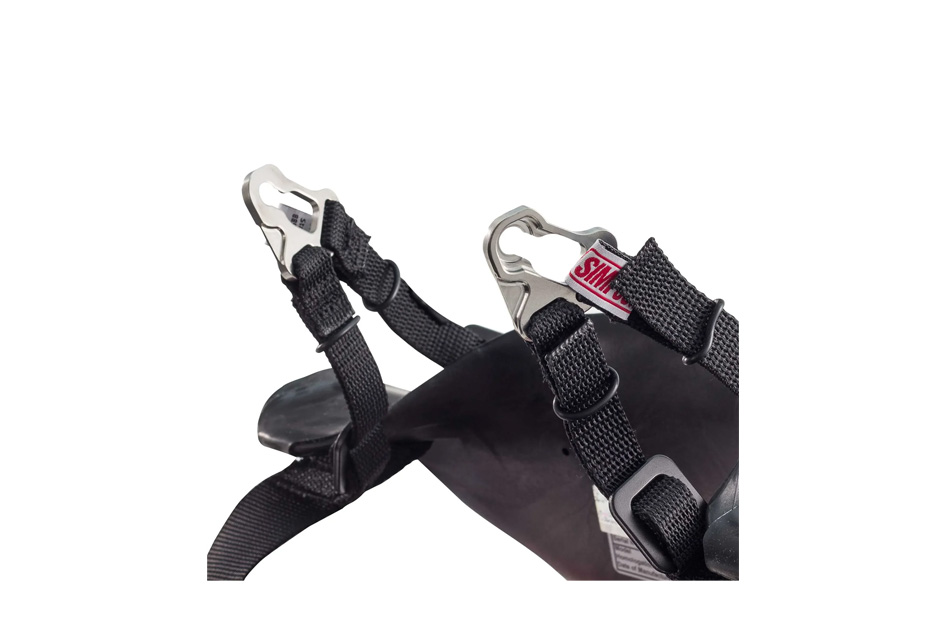An evolution of the Hybrid Pro Rage, the new Hybrid Sport device improves upon the design and technology which promises the racer an improved product, at the same price range as the old model. The Hybrid Sport is lighter, weighing in at 20% less for the large, including hardware; and the DuPont carbon/polymer construction is sleek, modern and appealing with defined wings for better harness containment. The sliding tethers and multi-tether system enhances the side to side range of movement and field of vision. The Hybrid Sport is both SFI 38.1 and FIA certified.