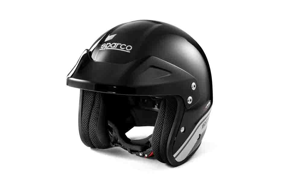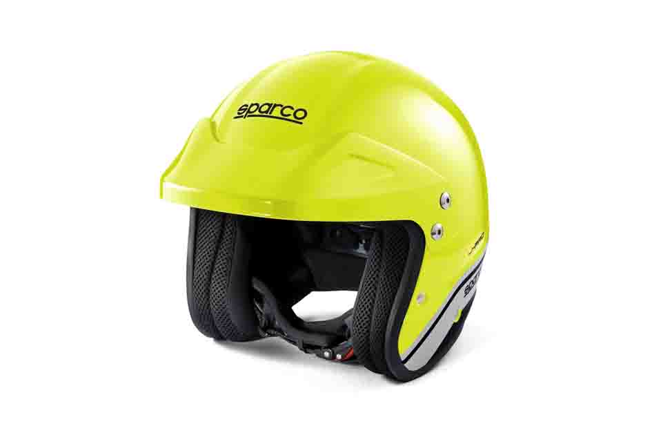 The J-Pro from Sparco is an entry-level open-face helmet suitable for events that do not require an FIA or Snell-approved helmet, such as track days in closed cockpit cars. Made from a lightweight ATM shell with soft and comfortable hypoallergenic liner and featuring a peak to reduce glare on bright days