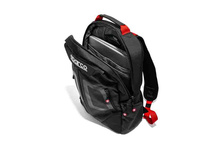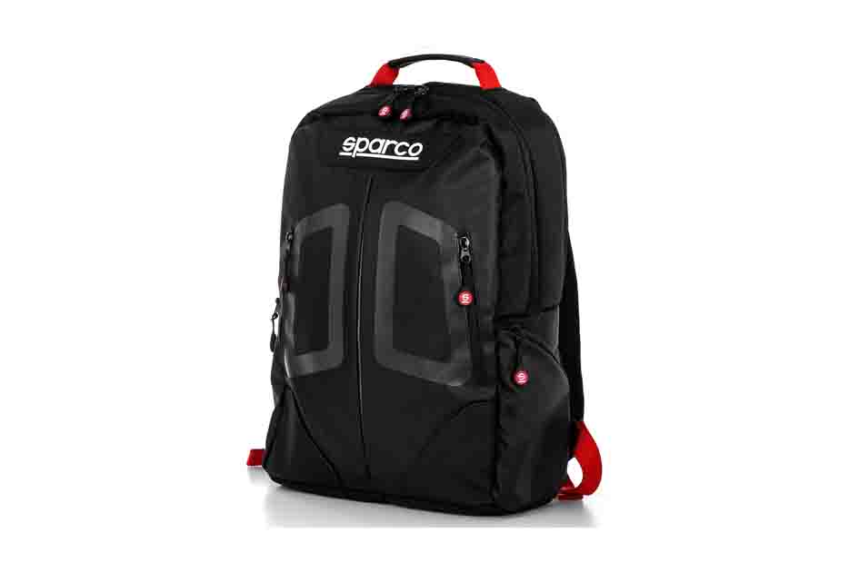 It has two double-padded Sparco-branded adjustable shoulder straps and is made from 600 polyester water-resistant fabric.
