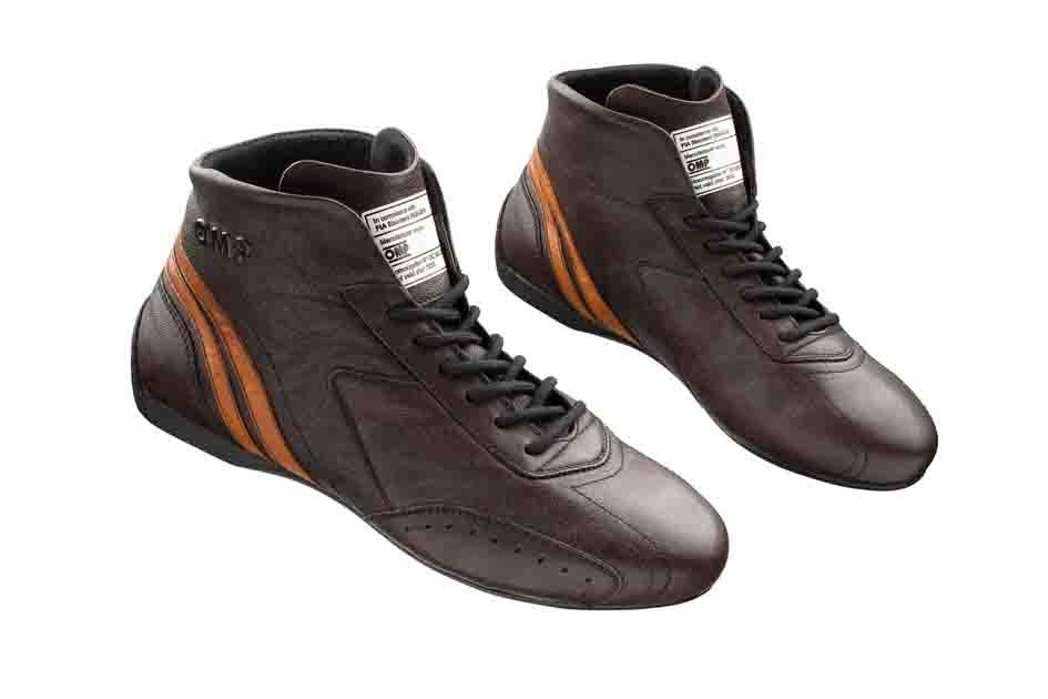 The OMP Carrera race boots are a mid-cut classic design boot with an extremely high-quality treated leather construction to give a very soft feel and aged look. Lightweight and comfortable design with a soft knit Nomex inner lining and handcrafted oil and fuel resistant sole with tire tread sculpted design, which also offers superior levels of sensitivity and grip to the pedals.