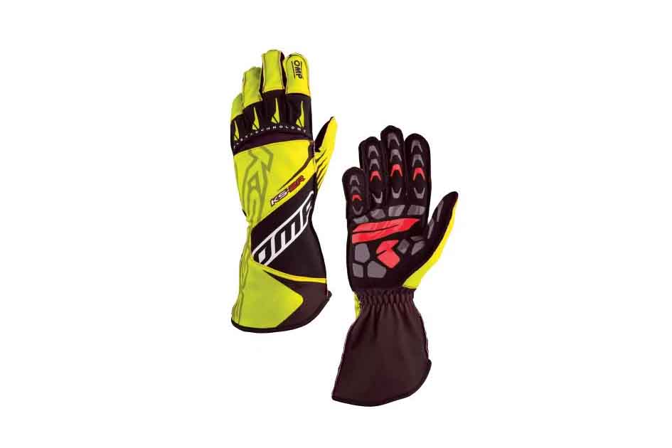 This latest version of the popular KS-2R kart glove from OMP features an aggressive design with bold colour schemes. Manufactured using a breathable stretch fabric for optimum fit and comfort, with a silicone print palm providing high levels of grip on the steering wheel.