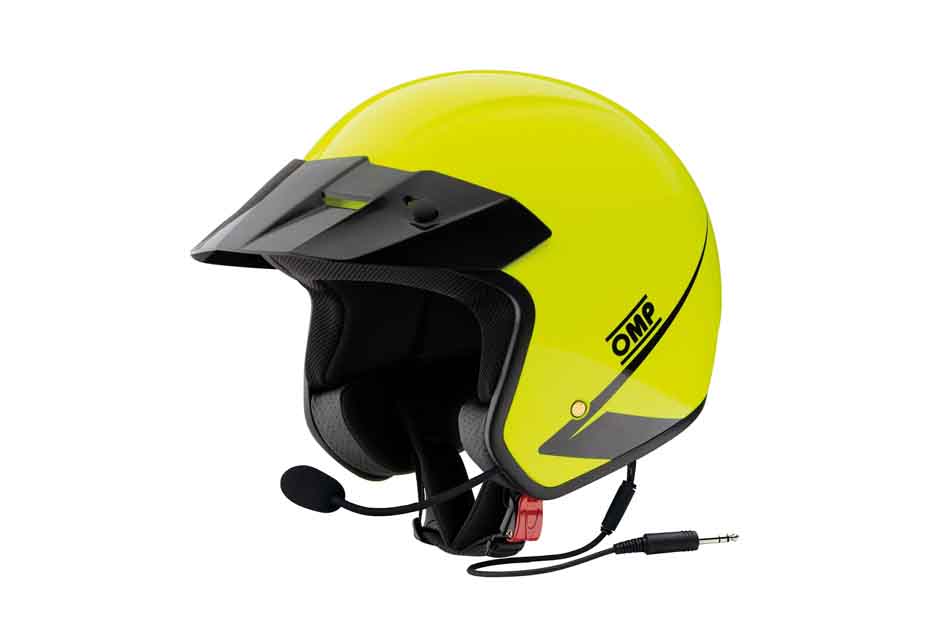 Inside the helmet is a pre-installed stereo intercom headset that is suitable for use with OMP's B-Race intercom system.