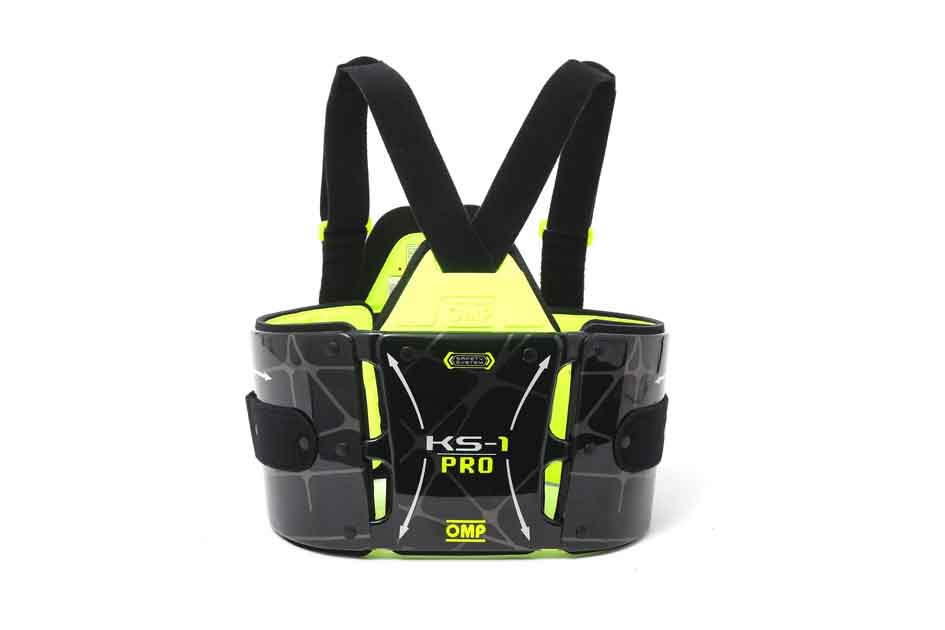 The OMP KS-1 Pro karting rib protector has been developed using input from the world's leading teams, resulting in a vest that complies with the latest FIA 8870-2018 approval and provides unrivaled protection for the ribs, back, and chest.